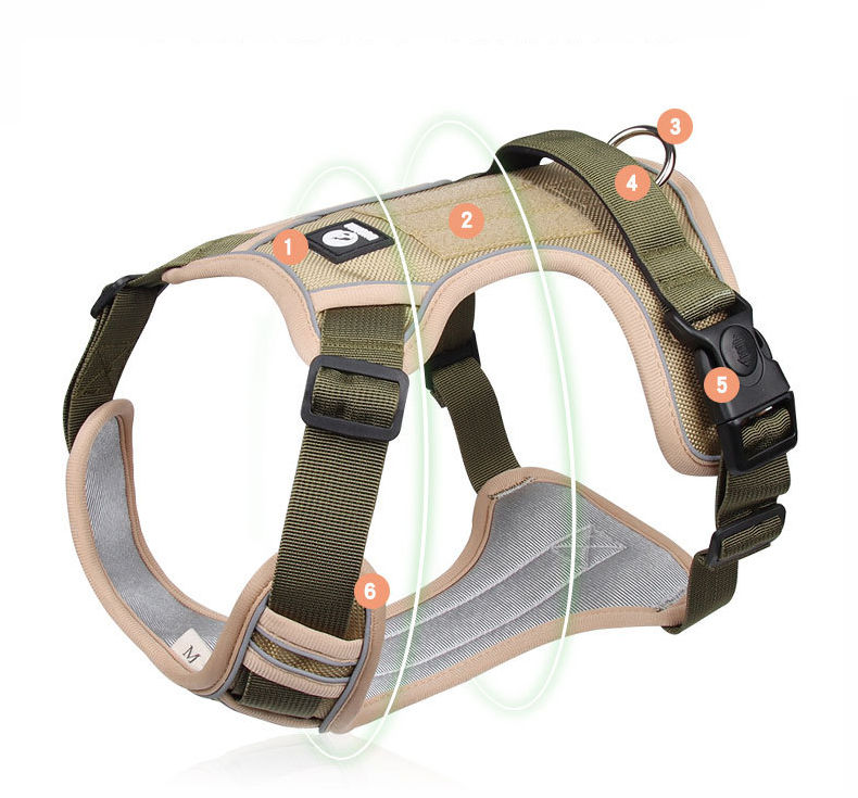 High-visibility reflective detailing keeps your dog safe on early morning walks or evening adventures, while the padded chest strap ensures a secure, no-chafe fit. Whether you’re training in the park or heading out on a weekend hike, this harness moves with your dog — giving them freedom, and giving you peace of mind.
